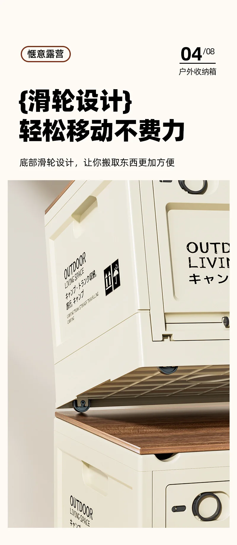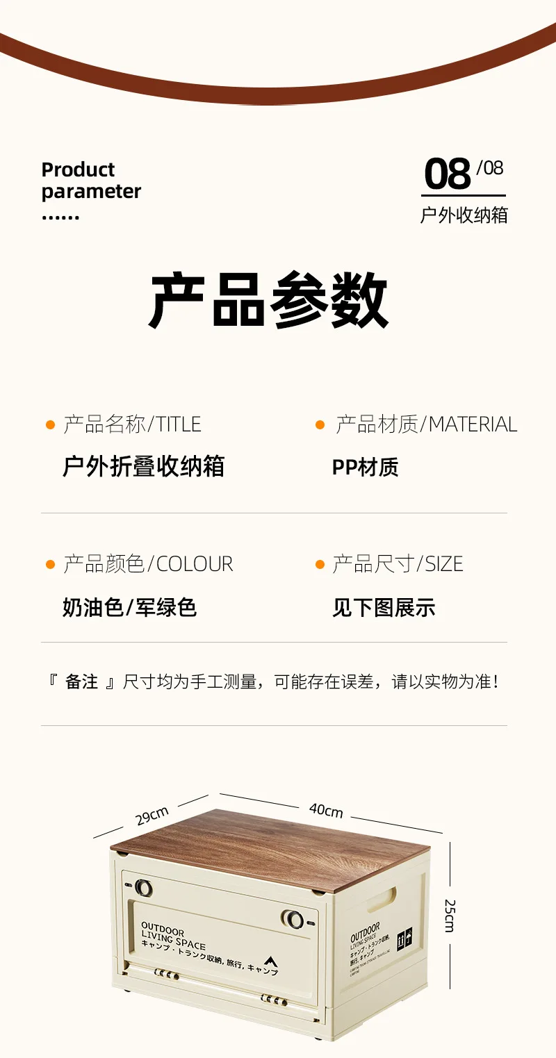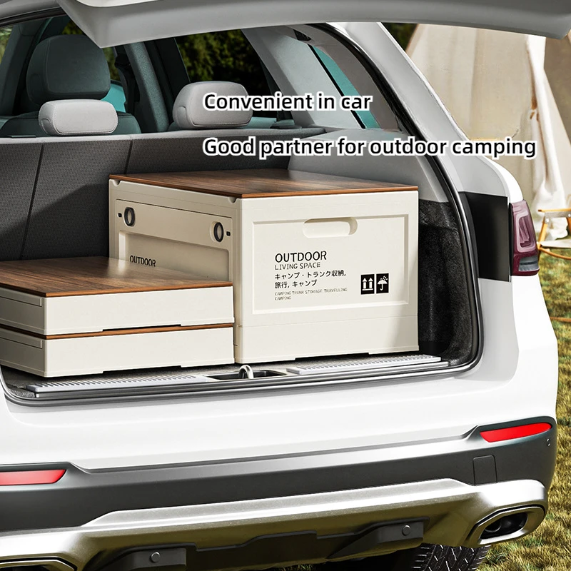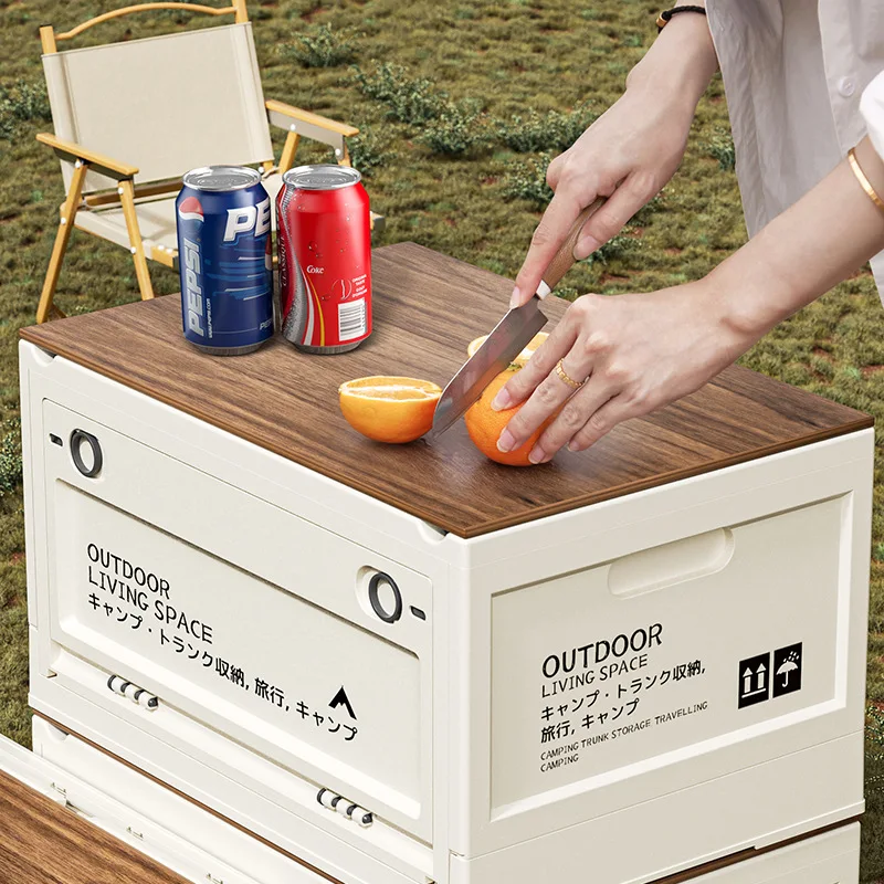 Folding storage box with wooden board: Immersive camping with wooden cover plate, multifunctional thickened wear-resistant wooden cover plate, which can not only store snacks and fruits, but also play cards and entertainment, open air barbecue, and enjoy an immersive experience
