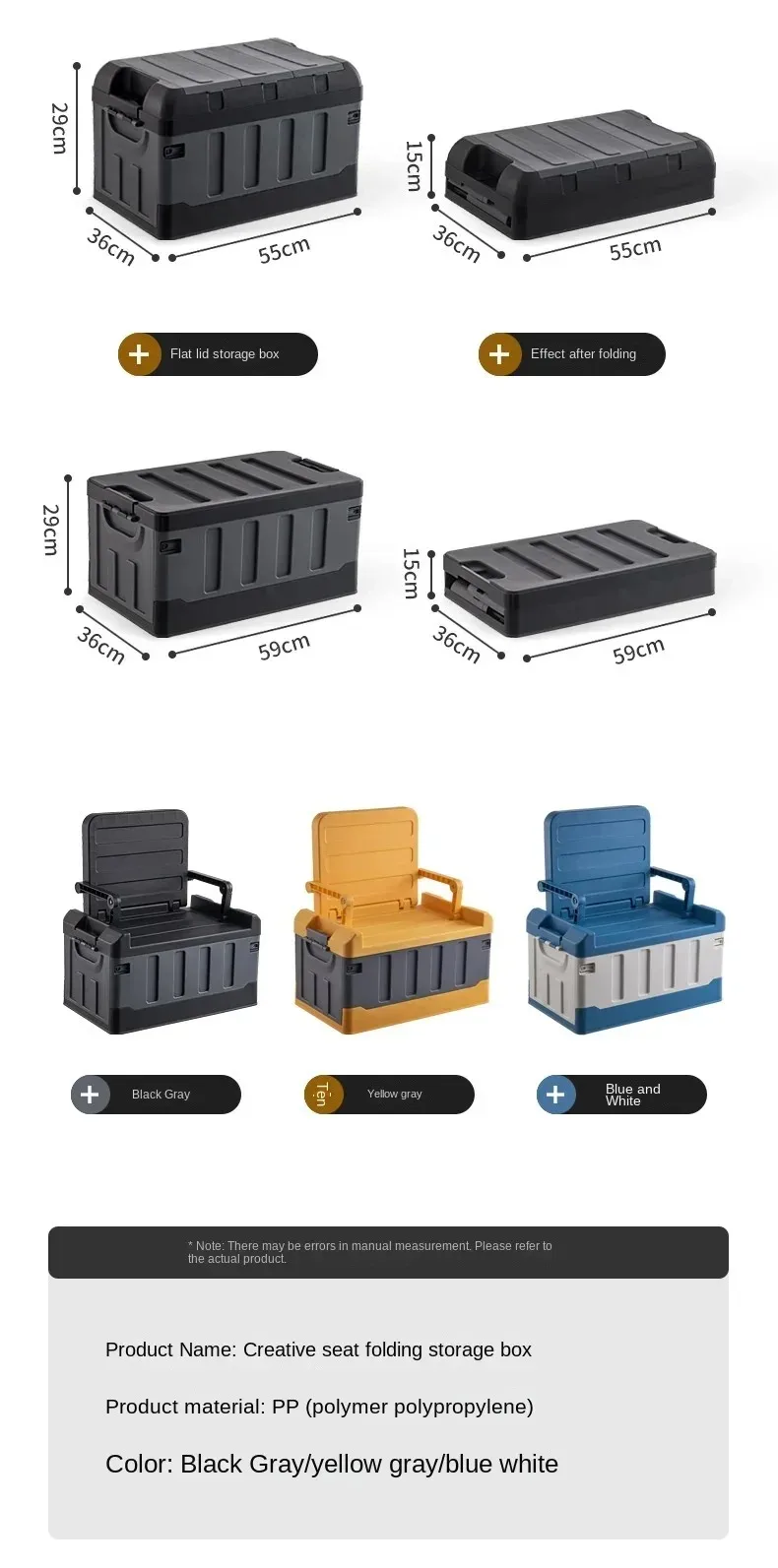 Boîte de rangement pliante, peut s'asseoir épais voiture/cuisine, boîte de rangement de Camping, voiture de secours, grand stockage mobile en plein air