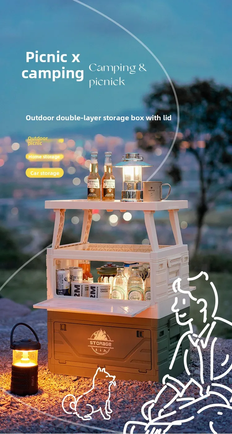 Boîte pliante de camping en plein air, camping avec table, boîte d'organisation de pique-nique de camping, boîte de rangement à domicile, boîte de rangement