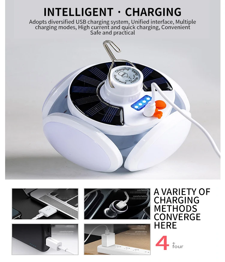 Lampe LED rechargeable, lanterne d'extérieur étanche, lampe solaire USB